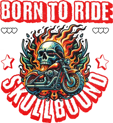 Born to Ride Skull Motorcycle DTF Transfer with Flames & 'Skullbound' Text