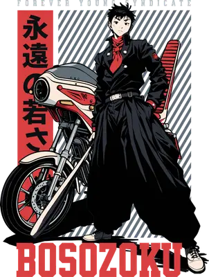 Bosozoku Anime Biker with Motorcycle DTF Transfer | Forever Young Syndicate