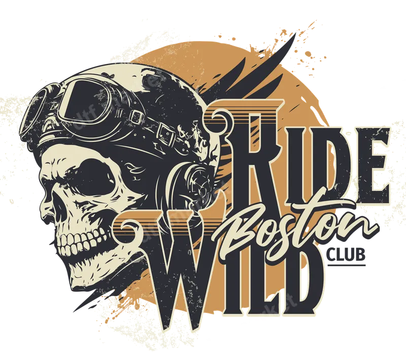 Boston Ride Wild Skull Biker DTF Transfer | Ready to Press Design