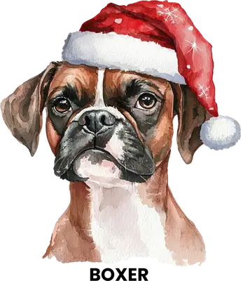 Boxer Dog Christmas DTF Transfer | Santa Hat Puppy Ready to Press
