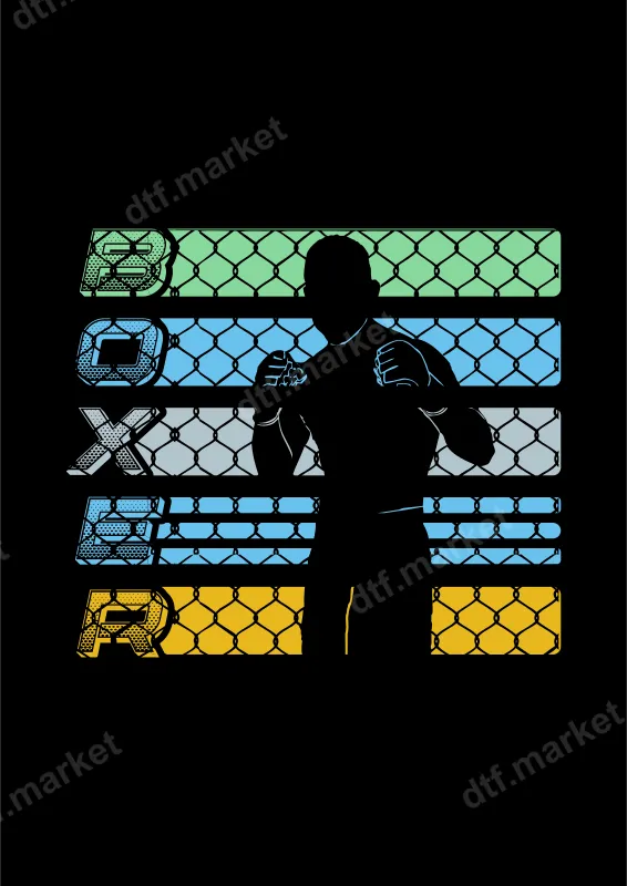 Boxer Silhouette Chain Link Fence DTF Transfer Combat Sports Design