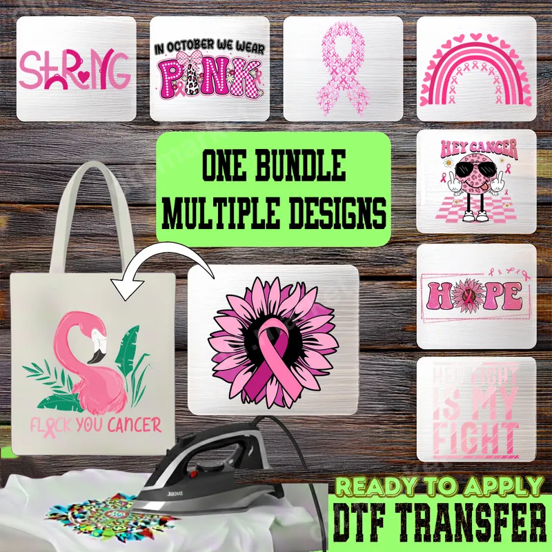 Breast Cancer Awareness DTF Transfer Bundle | Pink Ribbon Designs