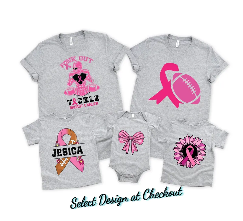 See allThis powerful collection of DTF transfers is dedicated to Breast Cancer Awareness, offering a variety of designs to show your support. Each ready to press transfer prominently features the iconic pink ribbon. Choose from athletic themes like a football-inspired ribbon and a 'Pink Out Tackle Breast Cancer' design, or opt for softer touches like a beautiful pink sunflower and an elegant bow. A customizable design with a split football ribbon is also available for a personal touch. These versatile direct to film transfers are perfect for anyone looking to raise awareness, honor a survivor, or remember a loved one. Ideal for Breast Cancer Awareness Month events, charity walks, fundraising initiatives, or simply everyday wear. They make thoughtful gifts for sports teams, families, and friends passionate about supporting the cause. Personalize apparel for groups participating in awareness campaigns or show solidarity during football season. Applying your new heat press transfer is incredibly easy! These premium iron on transfers adhere beautifully to almost any fabric type, including cotton, polyester, and their blends. For best results, use a heat press at 300-325°F for 15 seconds with medium pressure, then peel cold. If you don't have a heat press, a household iron can also be used with careful application. Unlike traditional vinyl transfers, there's no weeding required, making custom apparel creation quick and hassle-free. Experience professional-grade quality with every shirt design. Our DTF transfers are known for their vibrant colors, exceptional durability, and soft-to-touch feel that won't crack or peel. Crafted using high-quality DTF film and strong adhesive, these apparel transfers ensure your message stands out for a long time. Create stunning, long-lasting custom shirts and accessories that truly make a statement and help fight for a cure.
