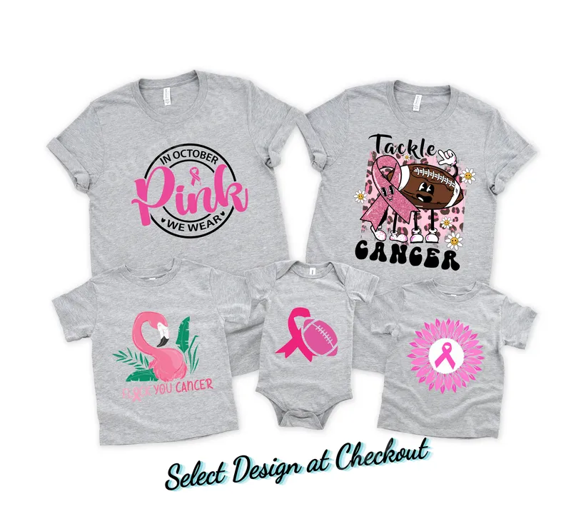 See allDiscover our empowering collection of Breast Cancer Awareness DTF transfers, each featuring the iconic pink ribbon. This selection offers a variety of ready to press designs, from the classic "In October We Wear Pink" to a spirited "Tackle Cancer" football motif, a vibrant flamingo declaring "Suck It Cancer," a simple yet impactful pink ribbon football, and a beautiful pink sunflower ribbon. These versatile direct to film transfers are perfect for personalizing apparel to show solidarity and support. These inspiring heat press designs are ideal for breast cancer survivors, their families, friends, and anyone looking to show support during Breast Cancer Awareness Month in October, or year-round. They make meaningful additions to fundraising event shirts, charity walk apparel, or as thoughtful gifts to spread hope and awareness. Equip your support squad or create unique items for advocacy with these powerful iron on transfers. Applying these high-quality heat transfer designs is simple and efficient. Each design works perfectly on a wide range of materials, including cotton, polyester, and various blends. Use a heat press at 300-325°F for 15 seconds with medium pressure, or apply with a household iron. Unlike traditional vinyl transfer, our DTF transfers require no weeding, making customization quick and hassle-free. Crafted with professional-grade DTF film and vibrant, long-lasting inks, these apparel transfers are designed to be crack-resistant, soft to the touch, and maintain their brilliant colors even after multiple washes. Our heat press ready transfers ensure a durable and professional finish every time, allowing you to create impactful custom garments that truly stand out.