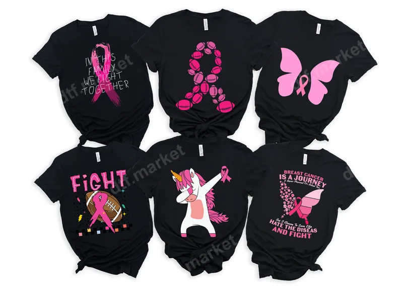 See allDiscover our inspiring collection of Breast Cancer Awareness DTF transfers, featuring a range of designs crafted to show solidarity and hope. Each heat press transfer in this versatile pack celebrates strength and unity, from powerful pink ribbons intertwined with footballs to elegant butterflies and a unique dabbing unicorn. These vibrant designs are ready to press, making it easy to create meaningful apparel for yourself or loved ones, spreading awareness and showing unwavering support. These impactful iron on transfers are perfect for breast cancer survivors, their families, and dedicated supporters looking to make a statement. Ideal for Breast Cancer Awareness Month in October, charity walks, fundraising events, or even supporting a team during football season. Create custom t-shirt transfers for group events, family gatherings, or as heartfelt gifts for those fighting or honoring someone who has fought this disease. Show your commitment to the cause with every wear. Applying these professional DTF transfers is simple and efficient. They are compatible with a wide range of fabrics, including cotton, polyester, and various blends. For best results, use a heat press at 300-325°F for 15 seconds with medium pressure, then peel cold. For those without a professional press, a household iron can also be used. Enjoy the convenience of a heat press design with no weeding or masking required, saving you time and effort. Our premium DTF transfers boast exceptional quality, delivering vibrant colors and crisp details that truly stand out. Engineered to be durable and crack-resistant, these apparel transfers maintain their integrity wash after wash. The soft, flexible finish ensures a comfortable feel on any garment. Each ready to press transfer is printed on high-grade DTF film with a strong adhesive, ensuring a lasting bond and a professional look for all your custom creations.