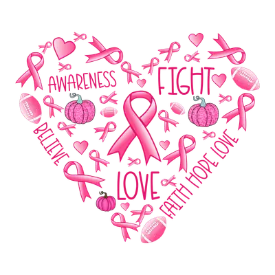 Breast Cancer Awareness Heart DTF Transfer - Fight Believe Love