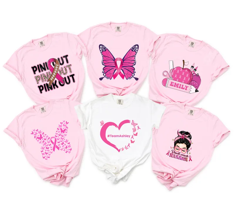 See allThis collection of designs embodies hope, strength, and unwavering support for Breast Cancer Awareness. Each direct to film transfer features the iconic pink ribbon, often creatively integrated with powerful imagery like graceful butterflies, encouraging messages such as "Breast Cancer Warrior," or even athletic themes like "Pink Out" football. These vibrant, ready to press designs are crafted to help you proudly display solidarity and honor those affected by breast cancer, making a bold statement with every garment. These meaningful heat press transfers are ideal for breast cancer survivors, their families, friends, and anyone looking to show support during Breast Cancer Awareness Month in October, charity walks, fundraising events, or community "pink out" games. They make thoughtful gifts for nurses, teachers, or anyone on #TeamWarrior. Whether you're customizing a uniform for a fundraising team or creating personal apparel, these iron on transfers are perfect for raising awareness and celebrating resilience. Applying your breast cancer awareness apparel transfer is incredibly easy, ensuring a professional finish every time. Our DTF transfers are designed for versatility, adhering beautifully to a wide range of fabrics, including cotton, polyester, and various blends. For best results, use a heat press at 300-325°F for 15 seconds with medium pressure, followed by a cool peel. No complicated weeding is required, saving you time and effort to create stunning custom apparel quickly. You can even use a household iron for smaller applications! Experience the superior quality of our DTF heat transfers, engineered for durability and exceptional visual appeal. Each design boasts vibrant colors that pop and a soft, flexible feel that seamlessly integrates with the fabric, preventing cracking or peeling. Made with professional-grade DTF film and a strong, reliable adhesive, these shirt designs are built to withstand countless washes while maintaining their integrity and powerful message, ensuring your support lasts.
