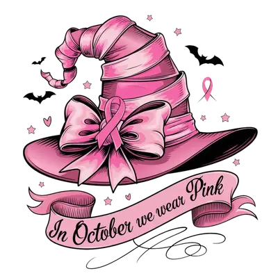 Breast Cancer Awareness Pink Witch Hat DTF Transfer | In October We Wear Pink