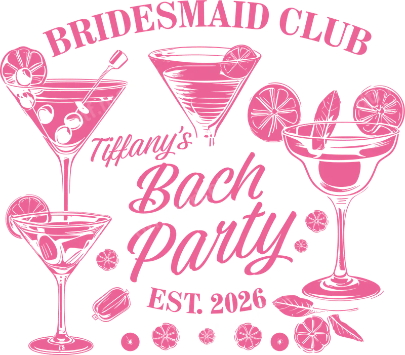 Bridesmaid Club Bach Party DTF Transfer | Custom Cocktails & 2026 Date