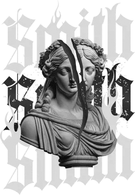 Broken Goddess Bust Gothic Type Streetwear DTF Transfer