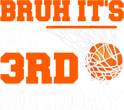 See allGet ready to celebrate a milestone with this vibrant "Bruh It's My 3rd Birthday" basketball DTF transfer. Featuring bold orange and white lettering alongside a dynamic graphic of a basketball swishing through a net, this design captures youthful energy and a playful, modern attitude. It's a perfect ready to press design for any young basketball fan hitting the big three, making for an unforgettable birthday outfit or gift.