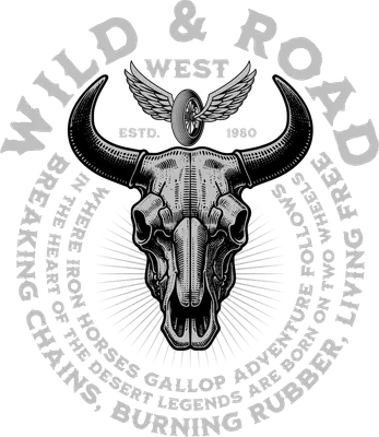 Bull Skull Winged Tire Wild Road DTF Transfer | Western Biker EST. 1980
