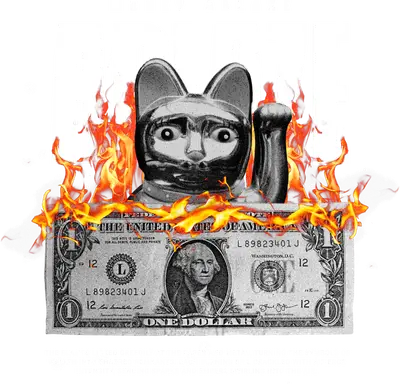 Burning Money Cat DTF Transfer | Edgy Lucky Cat Design