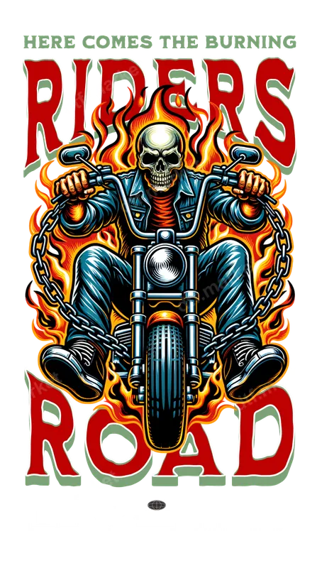 Burning Riders Road Skull Biker Motorcycle DTF Transfer Flames