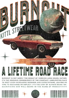 Immerse yourself in a unique blend of retro automotive style and cosmic reflection with this eye-catching 'Burnout: A Lifetime Road Race' DTF transfer. Featuring a distressed classic red car soaring through a starry night sky alongside a stylized planet, this design perfectly captures a vintage streetwear vibe. The bold 'BURNOUT' typography makes this ready to press transfer a profound statement about the constant hustle of modern life. This design is ideal for streetwear aficionados, classic car enthusiasts, and anyone who appreciates a deep message within cool retro aesthetics. It makes an excellent iron on transfer for personal expression or a thoughtful gift. Small t-shirt businesses and crafters seeking unique heat transfer designs will find this an irresistible addition for creating standout apparel. Applying this heat press transfer is incredibly simple. It adheres seamlessly to cotton, polyester, blends, and nylon. Achieve professional results with a heat press (300-325°F for 15 seconds, medium pressure) or a household iron – no weeding, just peel and press! Perfect for custom t-shirts, personalized hoodies, sweatshirts, tote bags, or denim jackets. For lasting durability, wash garments inside out and tumble dry low. Our ready to press transfer ensures a high-quality finish. You'll love the vibrant, full-color printing and crisp details that bring the retro-cosmic scene to life. This transfer is crack-resistant, soft to the touch, and avoids the heavy, stiff feel of vinyl. Each direct to film transfer uses premium DTF film with a robust adhesive, guaranteeing professional-grade results for all your apparel and accessory customization needs.