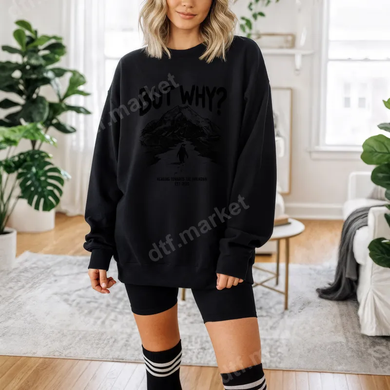 See allThis captivating DTF transfer features an introspective design asking "But Why?" with a determined penguin journeying through a rugged mountain landscape. "Heading Towards the Unknown EST. 2020" adds quiet adventure and philosophical inquiry. This ready to press design, with its subtle monochromatic aesthetic, is an ideal iron on transfer for those who appreciate meaningful apparel and exploring life's deeper questions. This unique heat transfer is designed for thoughtful adventurers, curious minds, or anyone navigating personal growth and new beginnings. It makes an excellent gift for students, philosophers, hikers, or those starting a new chapter. Wear it during contemplative walks, casual outings, or as a statement piece that sparks conversation, perfect for artistic heat press designs. Our direct to film transfer technology ensures effortless application on a wide range of fabrics, including cotton, polyester, and blends. Achieve professional results using a heat press at 300-325°F for 15 seconds with medium pressure. For smaller projects, a household iron can also be used. Forget the hassle of weeding or layering vinyl transfer – this ready to press transfer delivers a flawless finish. Experience superior quality with our premium DTF film. This t-shirt transfer boasts vibrant colors, exceptional detail, and incredible durability that resists cracking and peeling, even after multiple washes. The final design feels soft to the touch, seamlessly integrating with the fabric for maximum comfort. Trust dtf.market for heat press ready transfers that elevate your custom apparel with professional results.