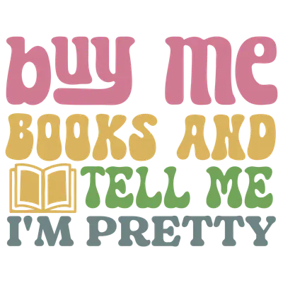 See allThis vibrant "Buy Me Books And Tell Me I'm Pretty" DTF transfer showcases a playful and sarcastic message, perfect for any avid reader with a witty sense of humor. Featuring a charming retro groovy font in eye-catching pink, mustard yellow, green, and teal, alongside a delightful open book icon, this design effortlessly captures a fun and nostalgic aesthetic. It's a ready to press design that combines style and a love for literature, making a bold statement wherever it's applied. This unique design is an absolute must-have for bookworms, librarians, teachers, and anyone who cherishes their reading time as much as compliments. It makes an excellent gift for birthdays, holidays, or as a special treat for yourself. Crafters and small businesses looking for an eye-catching iron on transfer will find this heat transfer design perfect for creating custom apparel that resonates with book lovers and stands out in any collection. Applying this high-quality heat press transfer is a breeze. It works beautifully on a wide range of fabrics including cotton, polyester, cotton-poly blends, and even nylon. For best results, use a heat press set to 300-325°F for 15 seconds with medium pressure, or apply with a household iron. There's no tedious weeding required—simply peel and press! This versatile design is ideal for custom t-shirts, cozy hoodies, stylish sweatshirts, practical tote bags, adorable baby onesies, durable aprons, and trendy denim jackets. For lasting durability, wash garments inside out and tumble dry low. Experience professional results with this premium ready to press transfer. Our direct to film transfer technology ensures vibrant, full-color printing with crisp details and smooth gradients. The finish is crack-resistant and soft to the touch, offering a superior feel without the heavy, stiff texture often associated with vinyl transfers. Each DTF transfer is meticulously printed on durable film with a strong adhesive backing, guaranteeing a flawless application and long-lasting wear.