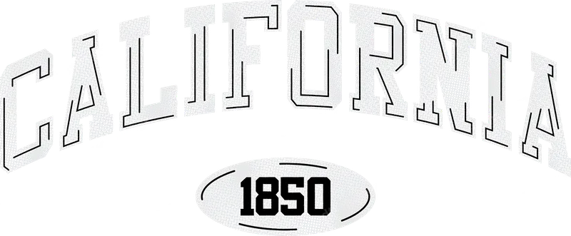 See allThis eye-catching DTF transfer features a stylized, arched "CALIFORNIA" in a classic collegiate font, complemented by "1850" in a distressed oval below. The design boasts a halftone dot pattern, giving it an authentic vintage and retro aesthetic. It’s a bold statement piece to celebrate California's heritage with a timeless look. This high-quality direct to film transfer is ready to press, making custom apparel creation simple. Ideal for California natives, proud residents, students, and tourists, this heat press design is fantastic for personalizing clothing. It's perfect for casual wear, state pride events, or as a unique souvenir. Use this iron on transfer to create custom gifts for friends and family who love the Golden State, or to add vintage flair to your own wardrobe. Our ready to press transfers are incredibly versatile, applying seamlessly to cotton, polyester, and various blends. For best results, use a heat press at 300-325°F for 15 seconds with medium pressure, followed by a warm or cold peel. While a professional heat press is recommended, these durable apparel transfers can also be applied with a household iron. Enjoy the convenience of no weeding or masking! Experience superior quality with our premium DTF transfers. Each transfer uses professional-grade DTF film and inks, ensuring vibrant colors, sharp details, and exceptional durability. These heat press designs are soft to the touch, highly crack-resistant, and built to withstand numerous washes. Elevate your garments with a professional finish that lasts, making your custom projects stand out.