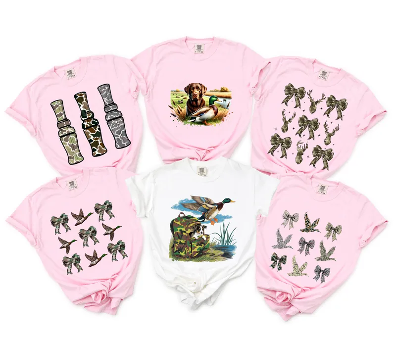See allDive into the outdoor lifestyle with our unique Camo Bows and Deer Antlers DTF transfer. This eye-catching design features a repeating pattern of rustic camouflage bows interspersed with intricate deer antlers, capturing the spirit of hunting and nature. Perfect for adding a touch of wilderness flair, this ready to press heat transfer is a must-have for anyone who loves the great outdoors and aims for distinctive apparel. This versatile heat press design is ideal for hunters, outdoor enthusiasts, country girls, or anyone who appreciates rustic camo aesthetics. It makes an excellent gift for Father's Day, birthdays, hunting season celebrations, or as a thoughtful present for a friend who enjoys spending time in nature. Customize apparel for hunting trips, family reunions, or everyday casual wear with this distinctive iron on transfer. Our premium direct to film transfer is designed for easy application on a wide range of fabrics including cotton, polyester, and cotton/poly blends. For best results, use a heat press at 300-325°F for 15 seconds with medium, even pressure. This professional quality shirt design requires no weeding, making your garment customization quick and effortless. For household irons, use firm pressure and apply evenly for a strong bond. Experience vibrant colors and exceptional durability with our top-tier DTF transfers. Each image is printed with high-quality inks on professional DTF film, ensuring a soft-to-the-touch finish that resists cracking, peeling, and fading wash after wash. The strong adhesive backing ensures a long-lasting bond, providing a custom look that stands the test of time on any apparel transfer.