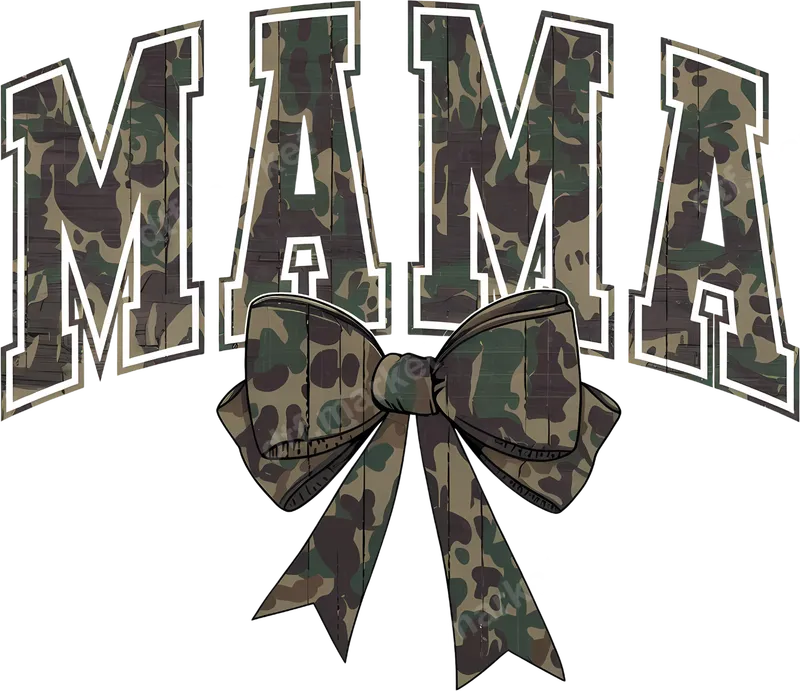 See allThe design features "MAMA" in bold, collegiate-style letters, filled with a rustic camouflage pattern and wood grain texture. A charming matching camouflage bow sits gracefully below the text, adding a touch of feminine strength to this rugged design. This premium DTF transfer is a ready to press design, perfect for creating unique and personalized apparel with a modern country or military-inspired aesthetic. This versatile heat transfer is ideal for any proud mama, military spouse, hunting enthusiast mom, or those who appreciate a blend of strong and sweet. It's a fantastic choice for Mother's Day gifts, baby shower presents, or birthday surprises for moms. Create custom t-shirts, sweatshirts, or accessories for family reunions, sporting events, or everyday wear to show off that special "Mama" title. Applying this iron on transfer is incredibly simple and requires no weeding, saving you time and effort. It adheres beautifully to cotton, polyester, and various blends, making it suitable for almost any garment. For best results, use a heat press at 300-325°F for 15 seconds with medium, even pressure. This durable heat press ready design can also be applied with a high-quality household iron, following the included instructions. Crafted using professional-grade DTF film and vibrant, eco-friendly inks, this apparel transfer ensures a stunning, high-definition finish. Enjoy rich colors, excellent wash durability, and a soft, flexible feel that won't crack or peel. Each custom transfer is made with a strong adhesive, guaranteeing a long-lasting impression on your chosen garments, giving them a professional, retail-quality look.