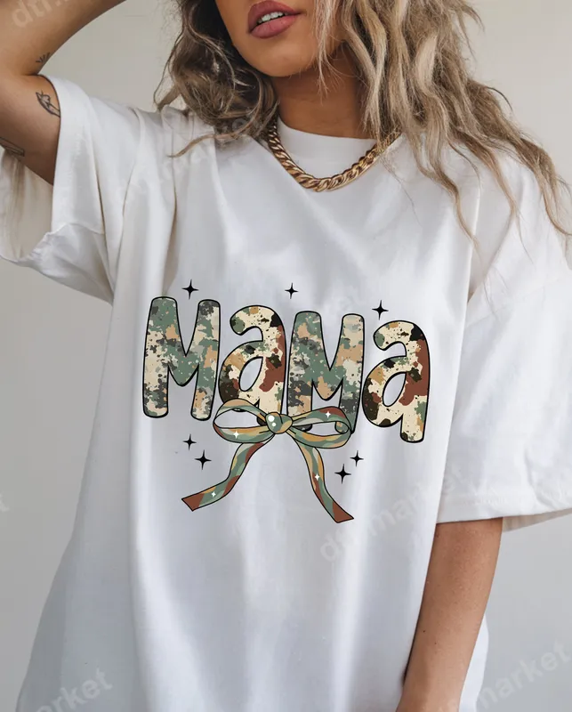 See allThis eye-catching DTF transfer features the word 'MAMA' in a stylish camouflage pattern, complemented by a charming camo-print bow. Sparkling accents surround the text, adding a touch of flair to this strong yet feminine design. It's a premium, ready to press heat transfer that brings a unique military-inspired aesthetic to any garment or accessory. Perfect for proud mothers, military spouses, veteran moms, or anyone who loves the rugged yet chic look of camouflage. This versatile design makes an excellent gift for Mother's Day, birthdays, deployments, homecomings, or just because. Create custom apparel for family events, military gatherings, or everyday wear to celebrate the incredible mothers in your life. Applying this direct to film transfer is effortless. It adheres beautifully to a wide range of fabrics, including cotton, polyester, and various blends, ensuring vibrant results on almost any textile. For best results, use a heat press at 300-325°F for 15 seconds with medium pressure, then peel warm or cool. A household iron can also be used, making it accessible for everyone with no weeding required. Our high-quality heat press design ensures vibrant colors, excellent wash durability, and a soft-to-touch finish that won't crack or peel. Crafted using professional-grade DTF film with a strong adhesive, this apparel transfer promises a long-lasting and professional look. Elevate your wardrobe with a durable and stylish iron on design that stands the test of time.