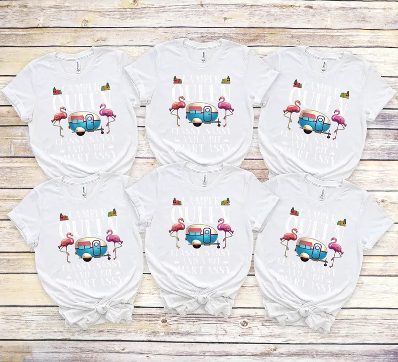 See allUnleash your inner 'Camper Queen' with this vibrant DTF transfer, featuring a charming retro camper trailer, playful pink flamingos, and the bold declaration: 'Classy, Sassy and a Bit Smart Assy.' This design is perfectly crafted for those who embrace the outdoors with a touch of humor and attitude. As a ready to press design, it promises stunning colors and sharp details, making it an ideal heat press ready transfer for your next creative project. This unique design is perfect for campers, glampers, RV enthusiasts, and anyone who loves a bit of playful sass on their adventures. It makes a fantastic gift for friends, family members, or yourself for camping trips, road trips, outdoor festivals, or just lounging by the campfire. Easily create custom t-shirts, tank tops, and other personalized apparel that truly stands out and expresses your fun-loving personality. Applying this high-quality heat transfer is incredibly easy. Designed for a professional finish, it adheres beautifully to a wide range of fabrics including cotton, polyester, and cotton/poly blends. Simply apply with a heat press at 300-325°F for 15 seconds with medium pressure, then perform a cold peel. You can even use a household iron for smaller applications, ensuring a smooth, durable finish without any tedious weeding required. Experience the superior quality of our professional DTF transfers. This apparel transfer boasts incredible durability, crack resistance, and a soft-to-the-touch feel, ensuring your custom garments look great wash after wash. The strong adhesive on our direct to film transfers guarantees a long-lasting bond, giving you confidence that your iron on decal will endure all your outdoor escapades and beyond.
