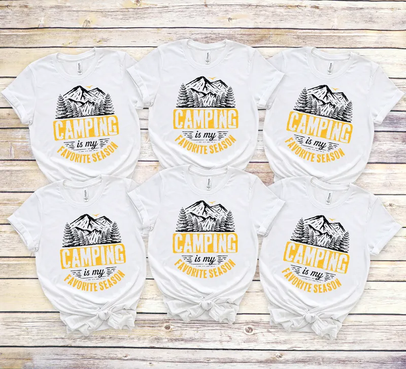See allThis vibrant "Camping is my Favorite Season" DTF transfer captures the essence of outdoor adventure with its striking mountain and pine forest design. Featuring rugged peaks, dense trees, and two small birds soaring above, this ready to press transfer brings a touch of wilderness to any garment. The bold, distressed yellow lettering perfectly conveys a passion for the great outdoors, making it a perfect statement piece. Ideal for avid campers, hikers, and nature enthusiasts, this heat transfer is perfect for group camping trips, family reunions at the campsite, or as a thoughtful gift for anyone who considers the woods their second home. Create custom t-shirts, hoodies, or travel accessories for your next wilderness escape, or celebrate Father's Day with a design that speaks to his adventurous spirit. It's a fantastic way to personalize your gear for outdoor festivals or summer vacations. Applying this versatile apparel transfer is simple and efficient. It works beautifully on a wide variety of materials, including cotton, polyester, and various fabric blends. For best results, use a heat press at 300-325°F for 15 seconds with medium pressure, followed by a cold peel. A household iron can also be used, making it accessible for everyone. This iron on transfer requires no tedious weeding, saving you time and effort on your crafting projects. Experience professional-grade quality with this durable direct to film transfer. Our DTF transfers are known for their incredibly vibrant colors, superior crack resistance, and a soft, lightweight feel that integrates seamlessly with the fabric. Each heat press design is printed on premium DTF film with strong adhesive, ensuring your custom creation lasts wash after wash and adventure after adventure, maintaining its fresh look.