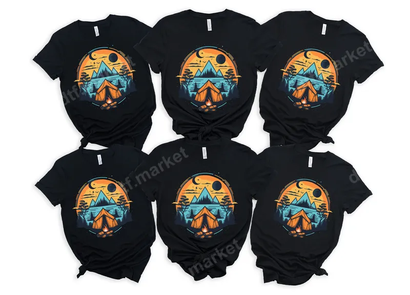 See allThis captivating DTF transfer design transports you to a tranquil mountain escape. It showcases a vibrant circular landscape featuring majestic peaks, a serene lake, a cozy camping tent, and a warm campfire, all set against a stunning orange sky with both a crescent moon and a sun. This eye-catching graphic is a perfect ready to press DTF transfer for anyone who loves the great outdoors and adventure. Ideal for campers, hikers, nature enthusiasts, and adventure seekers, this design is a fantastic way to express your love for the wilderness. It makes a thoughtful gift for birthdays, Fathers Day, or as matching apparel for family camping trips and outdoor excursions. Personalize your gear and proudly display your adventurous spirit with this unique heat press ready image. Our premium direct to film transfers are incredibly versatile, adhering beautifully to a wide range of fabrics including cotton, polyester, and various blends. Applying this heat transfer is simple with a heat press set to 300-325°F for 15 seconds with medium pressure, or you can even use a household iron. Enjoy a hassle-free application with no weeding required, making custom apparel creation quick and easy. This iron on transfer is designed for convenience. Experience professional quality with our DTF film, known for its vibrant colors, exceptional durability, and soft-to-the-touch feel. These apparel transfers are designed to resist cracking and fading, ensuring your custom t-shirt transfer looks great wash after wash. The strong adhesive guarantees a long-lasting finish, bringing your garments to life with a professional, high-end look.