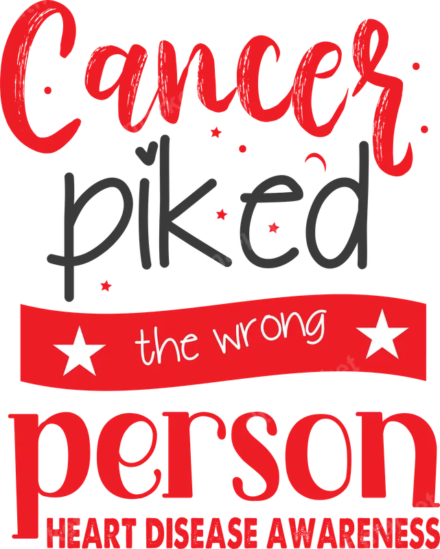 See allThis powerful DTF transfer features the bold, defiant message "Cancer picked the wrong person," accompanied by "HEART DISEASE AWARENESS." The design uses a mix of striking script and clean sans-serif fonts in vibrant red and dark gray, accented with small stars and dots, creating an impactful visual statement. It’s a perfect ready to press design for anyone looking to show strength and resilience in the face of major health challenges. This high-quality heat press transfer is prepared to elevate any garment with its profound message. This inspirational design is ideal for cancer survivors, heart disease fighters, and their unwavering supporters. It’s a meaningful gift for family members, friends, or caregivers who want to express solidarity and strength. Perfect for awareness events, charity walks, fundraising initiatives, or simply as a daily reminder of resilience. Wear it during awareness months like October for Breast Cancer or February for Heart Health, or as a personal emblem of triumph over adversity. Applying this premium apparel transfer is straightforward. It works beautifully on a wide range of materials, including cotton, polyester, and various blends. For best results, use a heat press at 300-325°F for 15 seconds with medium, even pressure. Unlike traditional vinyl transfer methods, there's no weeding required—simply press and peel! For household iron users, ensure consistent pressure and heat for a secure application. Our DTF transfers are renowned for their exceptional quality. Expect incredibly vibrant colors that pop, superior stretch and crack resistance for lasting wear, and a remarkably soft-to-touch finish. Each direct to film transfer is printed on professional-grade film with a strong adhesive, ensuring your custom transfer adheres flawlessly and endures countless washes without fading or peeling. Create professional-looking garments with ease.