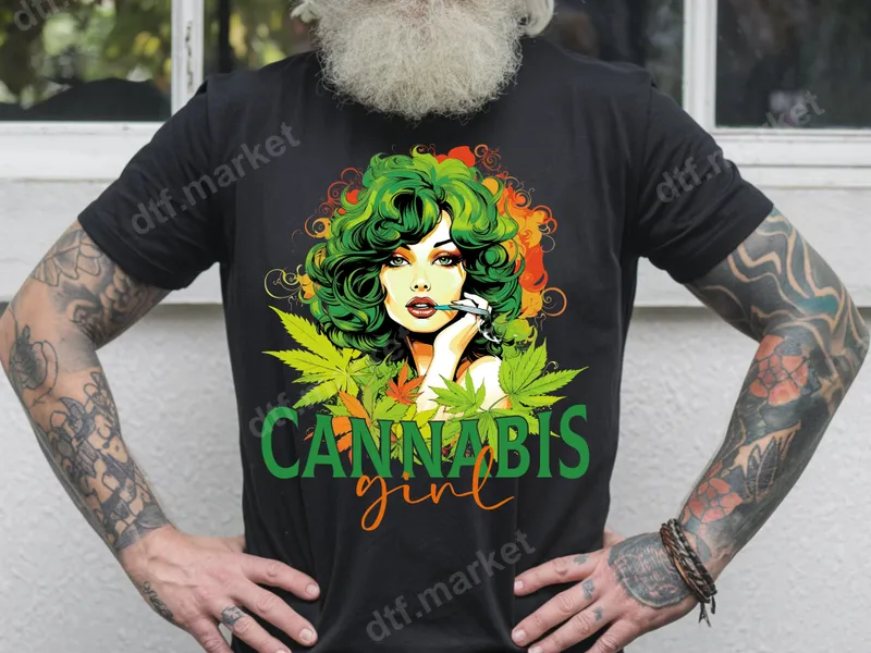 Cannabis Girl DTF Transfer - Vibrant Weed Leaf Shirt Design