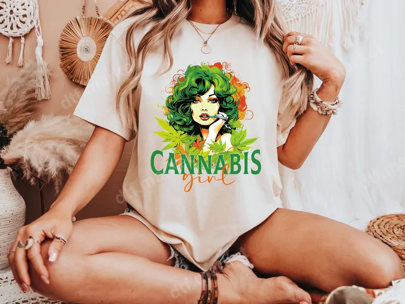 See allUnleash a bold statement with our 'Cannabis Girl' DTF transfer, featuring a striking retro-pop art design. This eye-catching graphic showcases a confident woman with flowing green hair adorned with cannabis leaves, surrounded by a lively, swirling backdrop. The 'CANNABIS' text is prominently displayed in a vibrant green, complemented by a stylish orange script 'girl' underneath. This high-quality direct to film transfer is perfect for adding an edgy, artistic touch to any garment and comes ready to press right out of the package, ensuring an effortless application. This unique cannabis-themed heat transfer is ideal for individuals who appreciate bold aesthetics and want to express their unique style. It's perfect for casual wear, music festivals, social gatherings, or as a thoughtful gift for friends who love cannabis culture and retro art. Whether you're celebrating 4/20, attending a concert, or just making a personal statement, this design is sure to turn heads and spark conversations. Applying this durable iron on transfer is simple with a heat press. We recommend pressing at 300-325°F for 15 seconds with medium pressure. For best results, a firm, even press is crucial. This versatile transfer works beautifully on cotton, polyester, and various fabric blends. Unlike traditional vinyl transfer decals, there's no tedious weeding required – just press and peel for a perfect finish every time. Our DTF transfers are crafted using premium film and ink, ensuring brilliant, long-lasting colors that resist cracking and fading wash after wash. The design boasts a soft, lightweight feel on fabric, providing maximum comfort and wearability. Get professional-grade t-shirt transfers that elevate your wardrobe or merchandise with ease and confidence.
