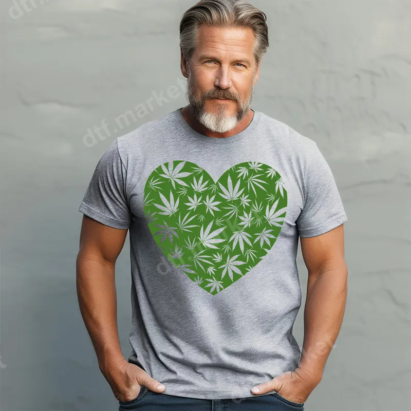 See allThis eye-catching design features a full heart pattern, intricately filled with various cannabis leaves in shades of green. It's a bold and expressive DTF transfer that showcases a love for the culture in a stylish way. This ready to press design makes it simple to add a unique touch to any garment, bringing a distinctive vibe to your wardrobe or custom creations. Perfect for cannabis enthusiasts, dispensary workers, or anyone who appreciates the symbolism of the hemp leaf. This versatile heat press transfer is ideal for casual wear, festivals, concerts, or as a thoughtful gift for friends who share the appreciation. Use it to personalize apparel for 4/20 celebrations, advocacy events, or simply to express your lifestyle daily. Applying this vibrant iron on transfer is incredibly easy. It works seamlessly on a wide range of fabrics including cotton, polyester, and various blends. For best results, use a heat press at 300-325°F for 15 seconds with medium pressure, then perform a cold peel. No special weeding or complicated steps are required, making it a professional-grade t-shirt transfer ready for immediate use. Our DTF transfers are known for their exceptional quality, offering vivid colors that resist cracking and fading even after multiple washes. The premium film ensures a soft hand feel, while the strong adhesive guarantees long-lasting durability. Create custom apparel that looks and feels professionally made every time with this high-quality direct to film transfer.