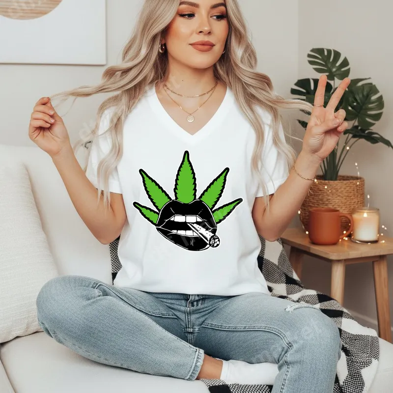 See allThis striking DTF transfer features a vibrant green cannabis leaf framing bold black lips holding a lit joint, exuding a cool and edgy aesthetic. It’s a perfect ready to press design for anyone looking to make a statement with their apparel. This high-quality direct to film transfer is designed to bring a touch of rebellious style to any garment. Ideal for cannabis enthusiasts, 420 celebrations, or anyone who appreciates unique streetwear and adult-themed designs, this heat press transfer is a fantastic way to express your personality. It makes a memorable gift for friends who love stoner culture, perfect for casual outings, concerts, or just chilling at home. Upgrade your wardrobe with this standout iron on transfer. Applying this heat press design is incredibly simple. It adheres perfectly to cotton, polyester, and cotton-poly blend fabrics. For best results, use a heat press at 300-325°F for 15 seconds with medium pressure, then peel cold. If you don't have a heat press, a household iron can also be used. Best of all, there's absolutely no weeding required, saving you time and effort. Crafted with premium DTF film and strong adhesive, this t-shirt transfer ensures professional, vibrant results that are crack-resistant and soft to the touch. The colors pop and stay bright, wash after wash, making your custom apparel last. Experience the superior quality and ease of our ready to press transfers for your next project.
