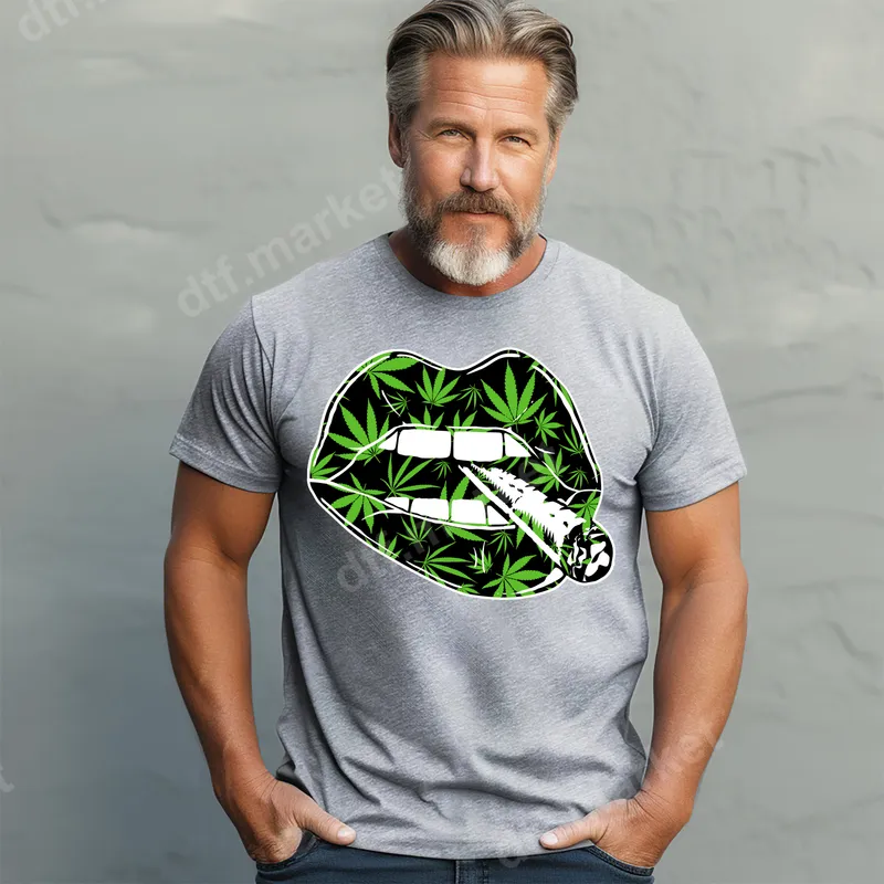 See allMake a bold statement with this eye-catching cannabis lips DTF transfer, perfect for those who embrace the 420 culture. This striking design features full, luscious lips, richly detailed with vibrant green marijuana leaves, expertly clutching a lit joint. It's a ready to press heat transfer that combines edgy style with a relaxed vibe, ensuring your apparel stands out from the crowd. This unique iron on transfer is ideal for cannabis enthusiasts, streetwear aficionados, and anyone looking to express their free spirit. It makes a fantastic gift for friends on birthdays, for celebrating 420, or for wearing to music festivals and casual gatherings. Easily customize your wardrobe for parties, concerts, or just everyday bold expression. Applying this high-quality transfer is straightforward and hassle-free. Our DTF transfers are designed for versatility, adhering perfectly to a wide range of fabrics including cotton, polyester, and their blends. Simply use a standard heat press at 300-325°F for 15 seconds with medium pressure, then peel the film after cooling. No tedious weeding or complex steps required, making custom apparel creation a breeze. Experience professional-grade results with our durable and vibrant heat press ready designs. Each t-shirt transfer boasts brilliant colors that pop, superior crack resistance, and a soft, smooth feel on your garment. Crafted with premium DTF film and a strong adhesive, this apparel transfer ensures a long-lasting, high-quality finish, turning any item into a personalized masterpiece.