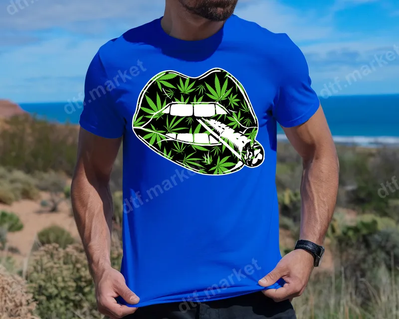 Cannabis Lips with Lit Joint DTF Transfer | 420 Weed Leaf Apparel