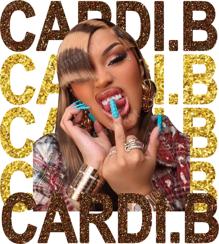 Cardi B Gold Glitter DTF Transfer | Ready to Press Hip Hop Apparel Design