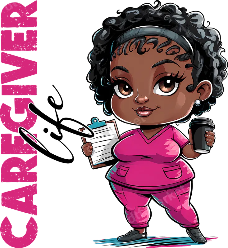 Caregiver Life DTF Transfer | Black Woman in Scrubs | Ready to Press Apparel Design
