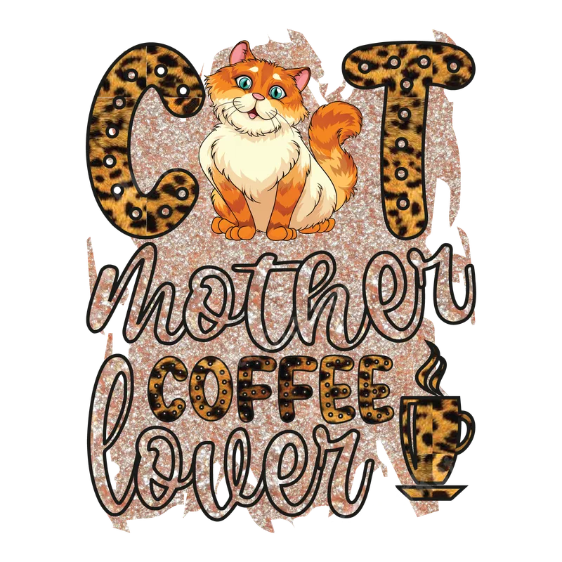 Cat Mother Coffee Lover DTF Transfer Leopard Glitter Design