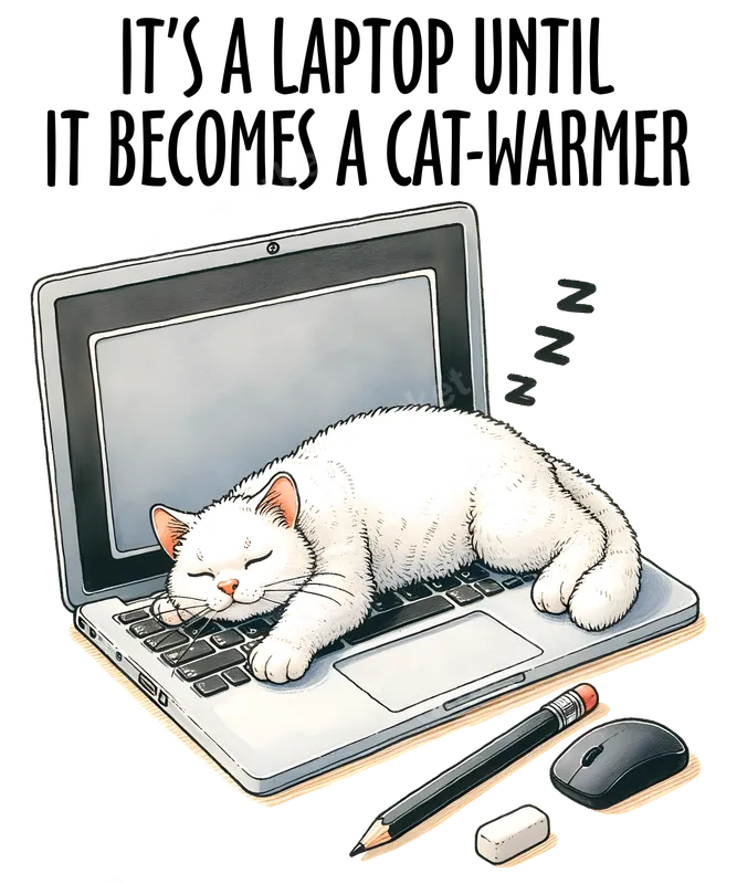 Cat Warmer Laptop DTF Transfer | Funny Pet Owner Humor Design