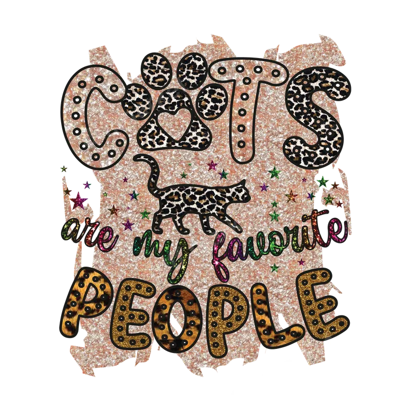 Cats Are My Favorite People Leopard Glitter DTF Transfer