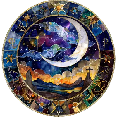 Celestial Stained Glass Cross & Moon DTF Transfer | Mystical Spiritual Design