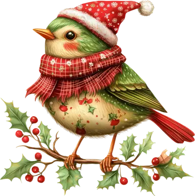 Charming Christmas Bird Santa Hat Holly DTF Transfer