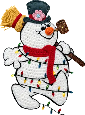Charming Crochet Snowman DTF Transfer with Christmas Lights