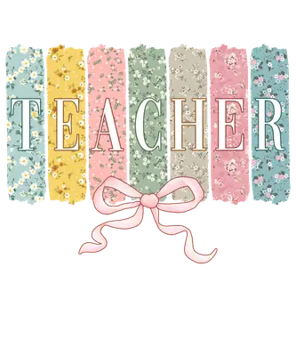 Charming Floral TEACHER DTF Transfer with Pink Bow Design