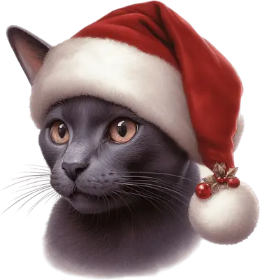 Charming Grey Cat with Santa Hat DTF Transfer | Festive Christmas Apparel