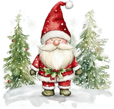 Charming Watercolor Santa Claus Christmas Tree DTF Transfer