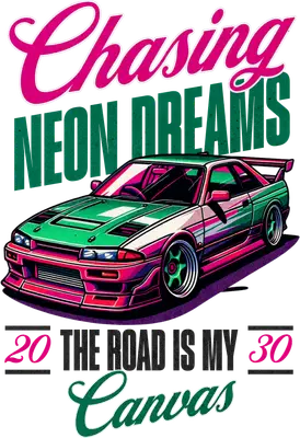 Chasing Neon Dreams JDM Sports Car DTF Transfer | Road Is My Canvas