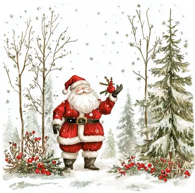 Cheerful Watercolor Santa Christmas DTF Transfer | Snowy Forest Holly