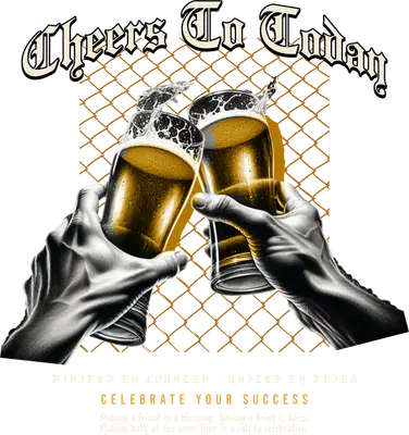 See allRaise a glass to good times with this vibrant 'Cheers To Today' DTF transfer, featuring two gritty hands clinking frothy beer mugs against a chain-link fence backdrop. The design, complete with the motto 'Divided by Country - United by Drink' and 'Celebrate Your Success,' perfectly captures the spirit of camaraderie and triumph. This ready to press transfer brings a bold, celebratory vibe, combining detailed black and white hands with the golden warmth of a refreshing brew. This unique heat transfer design is perfect for anyone who appreciates good company and a great drink. Ideal for friends celebrating milestones, bachelor parties, casual get-togethers, or as a fun gift for beer enthusiasts. Small t-shirt businesses, Etsy sellers, and crafters looking for popular iron on transfers will find this design a fantastic addition to their inventory, allowing them to create custom apparel for patrons of pubs, breweries, or anyone who enjoys raising a toast. Applying this heat press transfer is simple and efficient. It adheres beautifully to a wide range of materials, including cotton, polyester, cotton-poly blends, and even nylon. Use a heat press at 300-325°F for 15 seconds with medium pressure, or apply with a household iron for smaller projects. There's no tedious weeding required – just peel and press! It's perfect for creating custom t-shirts, hoodies, sweatshirts, tote bags, aprons, or even denim jackets. For best results and lasting durability, wash garments inside out and tumble dry on low. Our ready to press transfer boasts exceptional quality, featuring vibrant, full-color printing that brings every detail of the beer splash and gritty hands to life. The transfers are crack-resistant and offer a soft hand feel, avoiding the heavy, stiff texture often associated with traditional vinyl. Each direct to film transfer is meticulously printed on premium DTF film with a strong, reliable adhesive backing, ensuring professional-grade results and long-lasting wear on all your personalized creations.