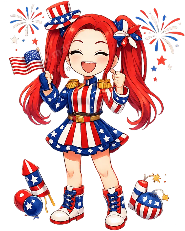 See allCelebrate American spirit with this vibrant Chibi Patriotic Girl DTF transfer! This adorable anime-style design features a cheerful girl with fiery red pigtails, dressed in a festive red, white, and blue outfit, complete with a tiny top hat and star-spangled skirt. She proudly waves an American flag amidst sparkling fireworks and playful firecrackers, creating a jubilant scene. This eye-catching graphic is a ready to press transfer, perfect for adding patriotic joy to any garment. This charming heat transfer is ideal for anyone looking to show their love for the USA during major holidays like the 4th of July, Memorial Day, Labor Day picnics, or even Election Day. It makes a fantastic gift for friends and family who appreciate cute, festive designs. Use this heat press design to create matching shirts for family reunions, parades, or summer parties, spreading cheer. Our high-quality direct to film transfer applies easily to cotton, polyester, and blends. For best results, use a heat press at 300-325°F for 15 seconds with medium pressure. It can also be applied with a household iron, instructions included. Say goodbye to tedious weeding; this iron on transfer is completely pre-printed and ready for immediate application, saving you time and effort. Experience professional-grade results with our premium t-shirt transfer. Each design boasts vibrant, true-to-color hues that pop, offering exceptional durability, resisting cracks and peels even after multiple washes. The finish is incredibly soft to the touch, ensuring maximum comfort. Crafted using advanced DTF printing technology and robust film with strong adhesive, this apparel transfer delivers a lasting, high-quality finish.